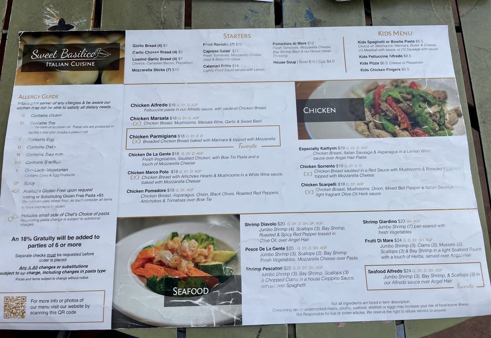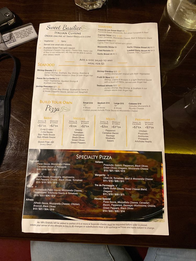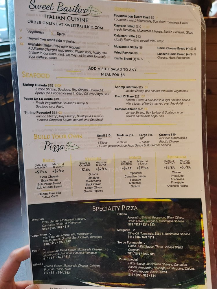 Sweet Basilico Italian Cuisine Menu (2025 Update)